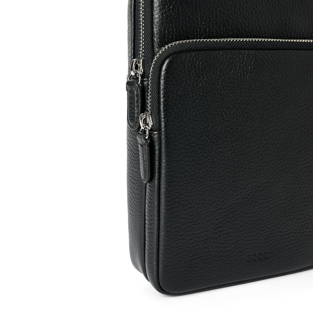 Exteriorul este completat cu accesorii premium, logo ECCO embosat și o bandă din plasă pe partea din spate a genții, pentru confort chiar și în zilele călduroase.
